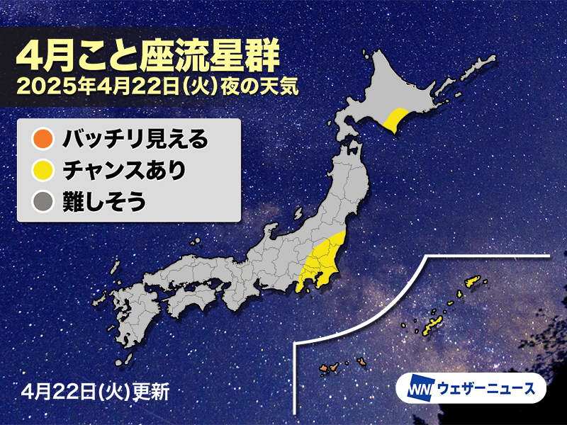 今夜「4月こと座流星群」の活動ピーク 天気は下り坂