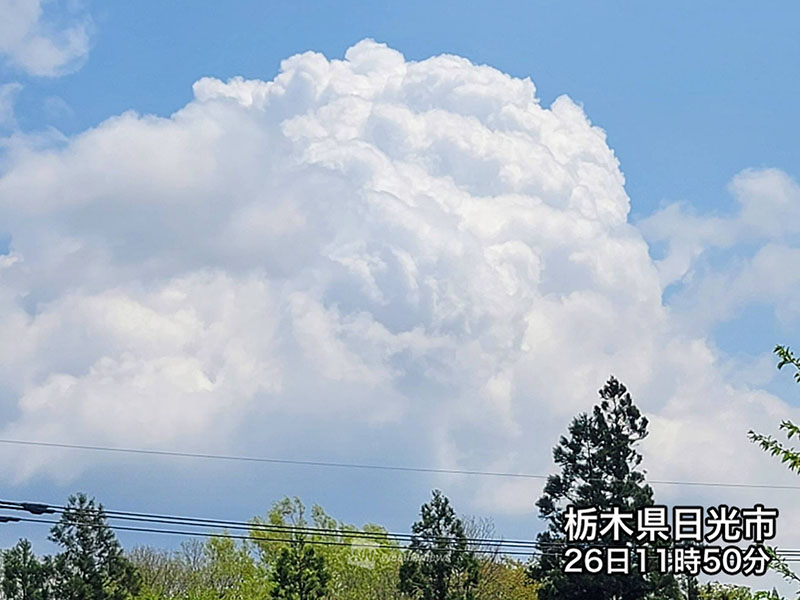 上空に寒気を伴った気圧の谷が、昼過ぎから夕方にかけて関東付近に接近します。大気の状態が不安定となり、都心を含む関東南部でも、天気が急変してにわか雨や雷雨の可能性があります。