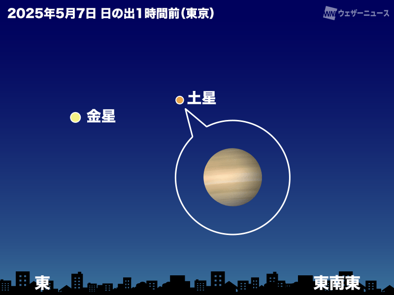 5月は夜明け前の東の空で、「土星」と非常に明るい「金星」の姿を見ることができます。