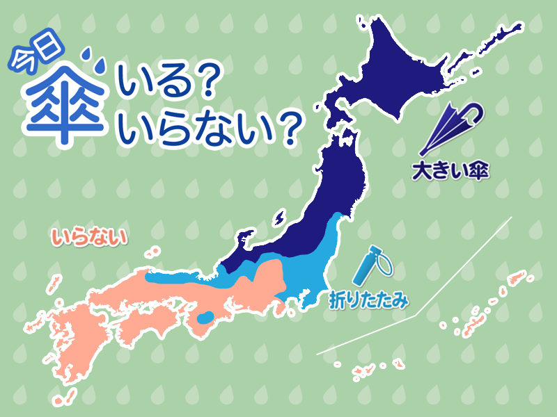 北近畿や山陰は朝のうち雨がパラつくことがあります。午後からの外出には傘はいらなそうです。