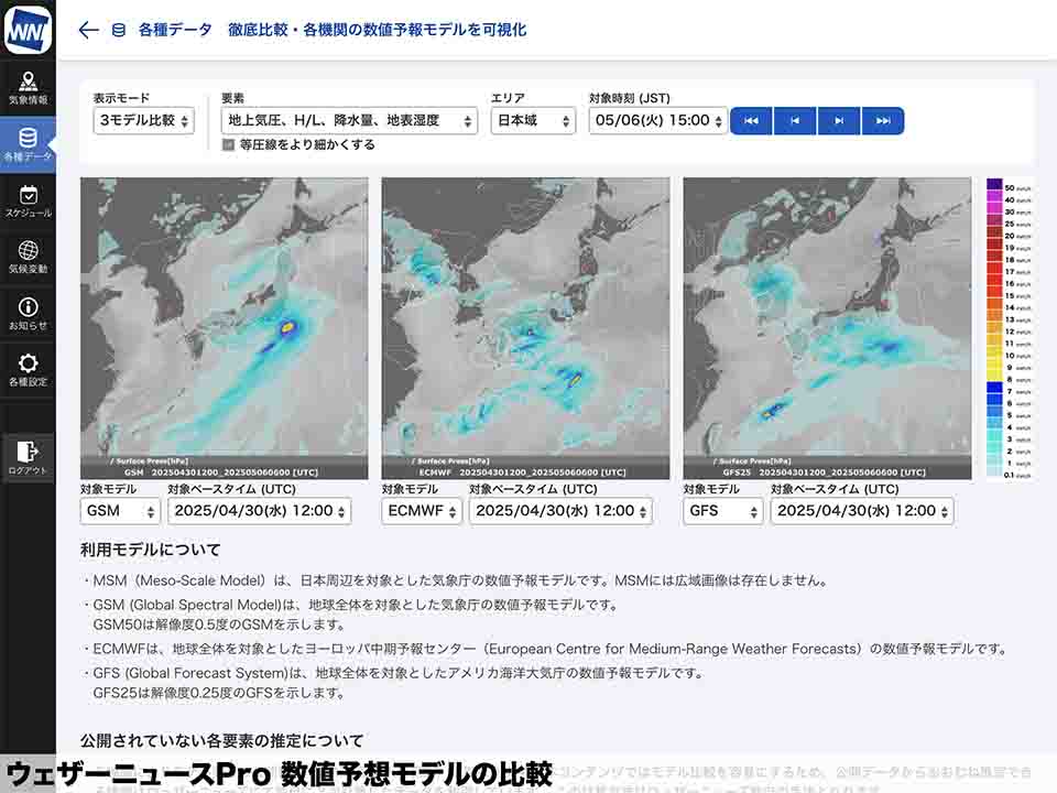 ウェザーニュースProで数値予報モデルを見るウェザーニュースProで数値予報モデルを見る