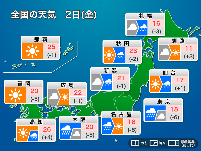 北海道も道南や道央では夜になると雨が降り出す見通しですので、お帰りの時間に備えて傘をご用意ください。