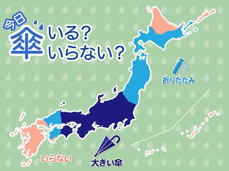 一方、北日本は天気は下り坂で段々と本降りの雨となるため、外出には折りたたみ傘をお持ちください。北海道の道南や道央、道東太平洋側も夕方以降は雨の降り出す可能性があります。