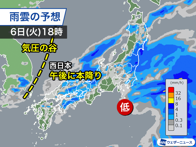 GW最終日は広い範囲で雨 局地的に雷を伴い強く降る所も