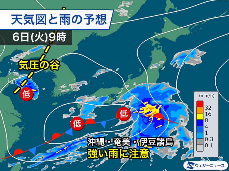 沖縄や伊豆諸島などで強い雨