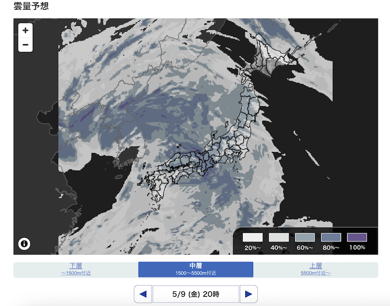 ウェザーニュース雲量予想マップ