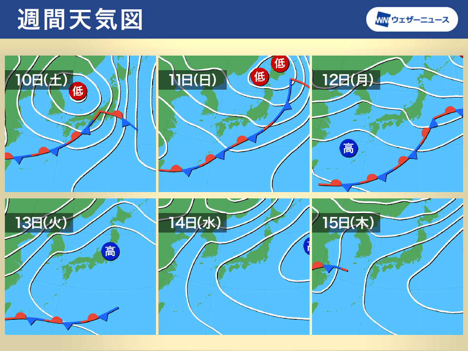 11日(日)から12日(月)も前線の影響を受ける見通しです。ただ、最新の予報では13日(火)以降に前線の活動が弱まる傾向となってきたため、晴れ間の出る日があるとみられます。