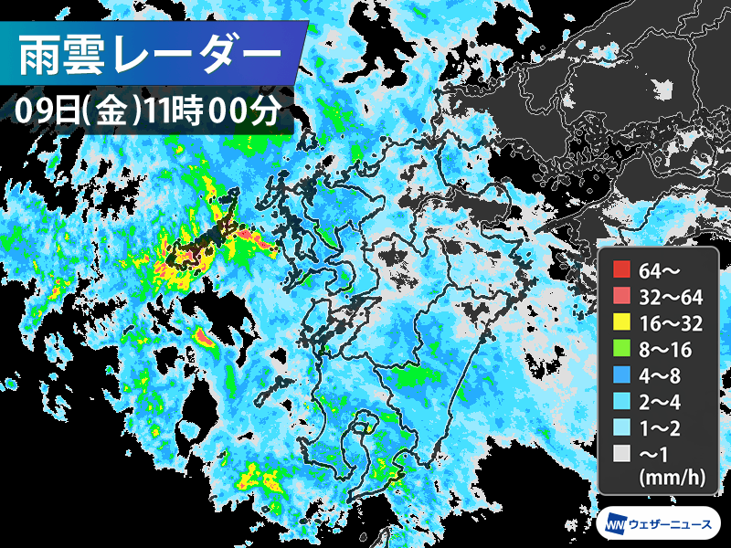 午後は九州本土にも活発な雨雲がかかり、局地的には1時間に50mmを超えるような非常に激しい雨となるおそれがあります。中国や四国でも激しい雨の可能性があり、道路冠水や中小河川の急な増水などに警戒が必要です。
