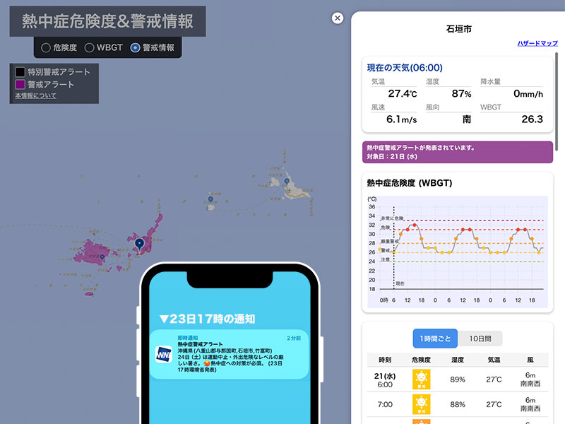 また、23日(金)にも、24日(土)を対象とした熱中症警戒アラートが沖縄・八重山地方に発表されました。