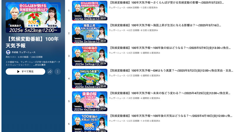 4月18日(金)からスタートした専門番組「100年天気予報」毎週、違った角度から“未来の気候”に迫ります。
