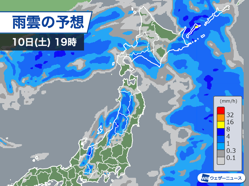 今後、夜にかけては雨の範囲が拡大し、東北から北陸では雨の降る所が多い予想です。局地的には雨雲が発達して土砂降りの雨になる可能性があります。現在雨が止んでいる所も油断せず、急な強い雨に注意してください。
