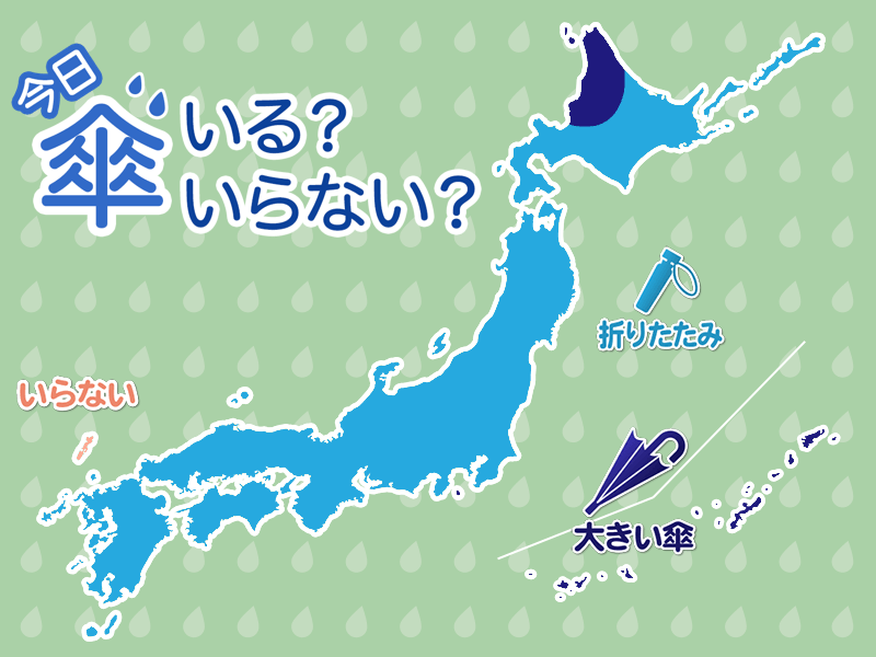 湿った空気や天気図には描かれない前線の影響で、広いエリアで雨の降ることがあります。お出かけの際に雨が降っていなくても、折りたたみ傘をお持ちください。