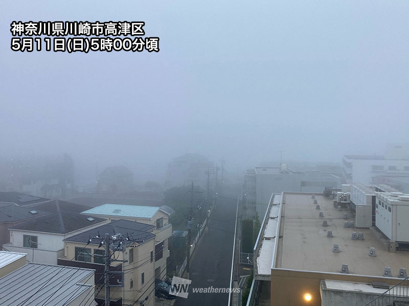 今朝の霧は、昨日の雨で残った地上付近の水蒸気が夜間の気温低下で水滴となって浮遊した「放射霧」とみられます。