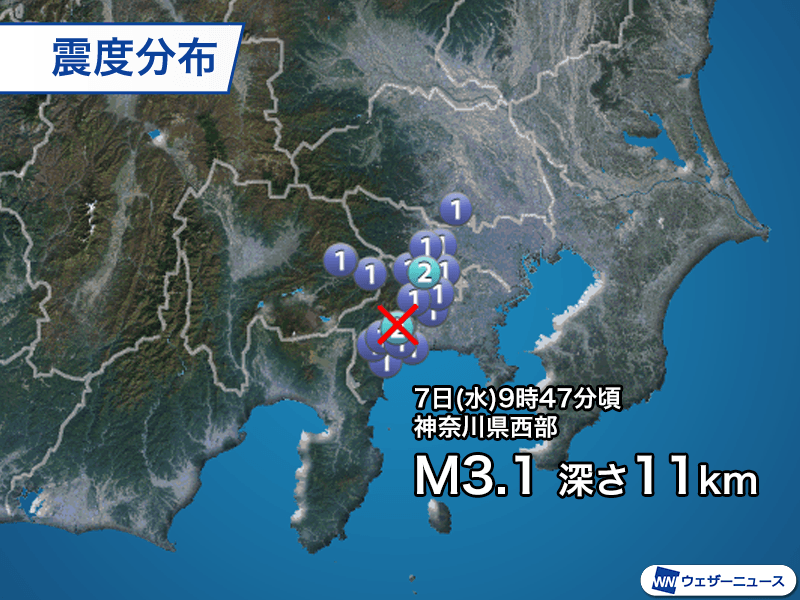 国内:神奈川県西部の地震 昨年8月の震度5弱とほぼ同じ震源
