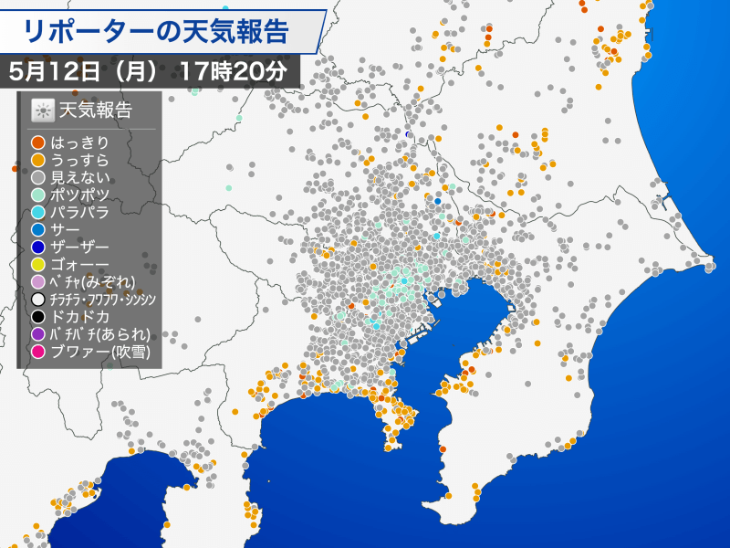 関東でも雨雲の発生してるところがあり、東京23区でも16時頃からポツポツ、パラパラと弱い雨が降りだしました。