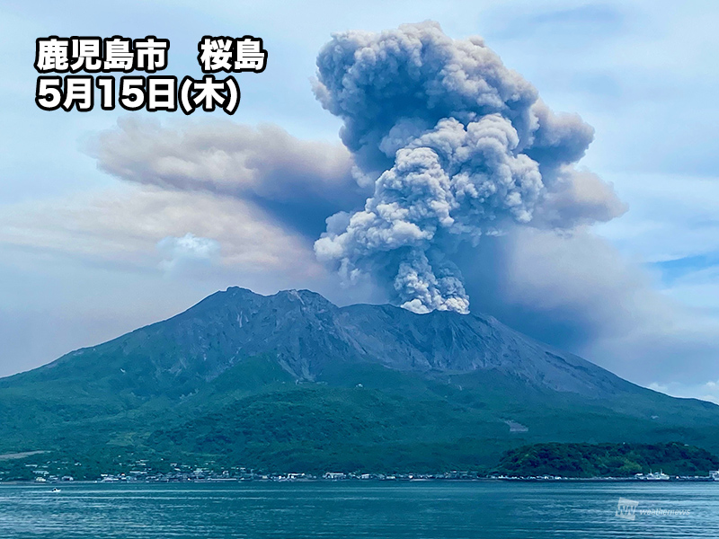 15日11時35分に桜島(南岳山頂火口)で噴火が発生し、噴煙は火口縁上3000mまで上がりました。10時45分に発生した連続噴火は現在も継続しています。桜島は今週初めの12日(月)から山体の膨張を示す地殻変動が観測されていました。