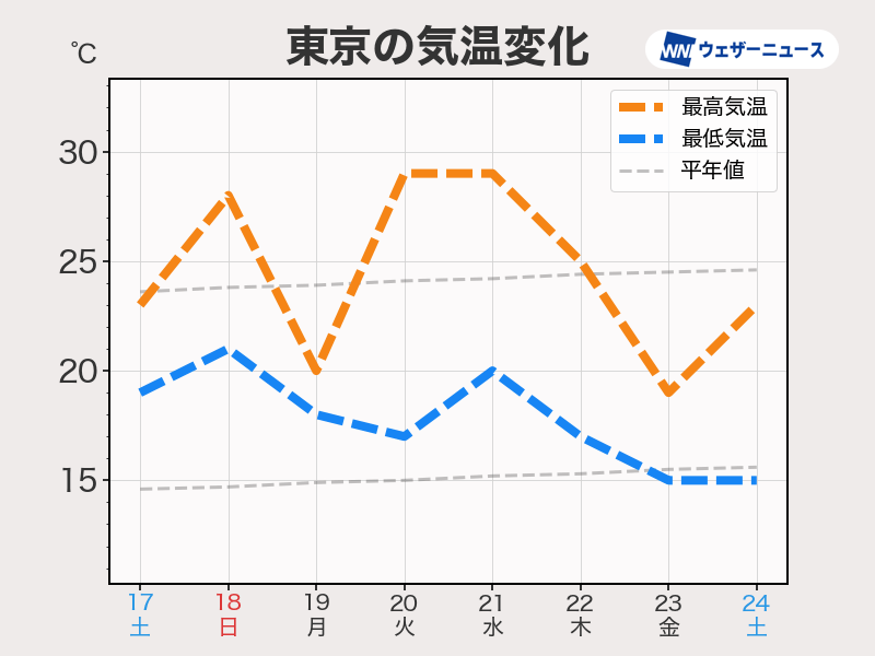 来週中頃にかけては暖かく湿った空気が流れ込みやすく、平年より気温の高い日が多くなる見込みです。梅雨前線が南に離れたタイミングで日差しが届くと、予想以上に気温が上がり蒸し暑くなる可能性もあります。まだ暑さに慣れていない時期なので、外で長時間過ごす場合は熱中症にお気をつけください。