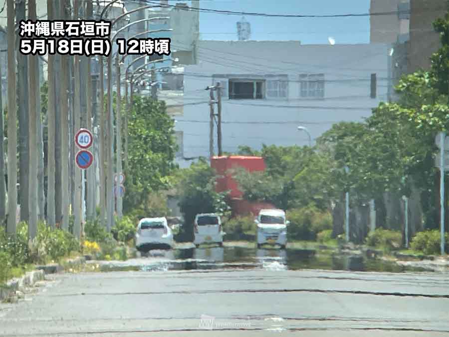 沖縄は真夏のような日差し 乾いた路面には「逃げ水」も