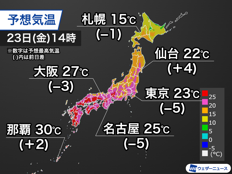 昨日よりも夏日予想は少なめ