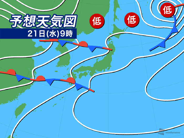 東北は北部を中心に別の前線が通過して、断続的に雨が降ります。