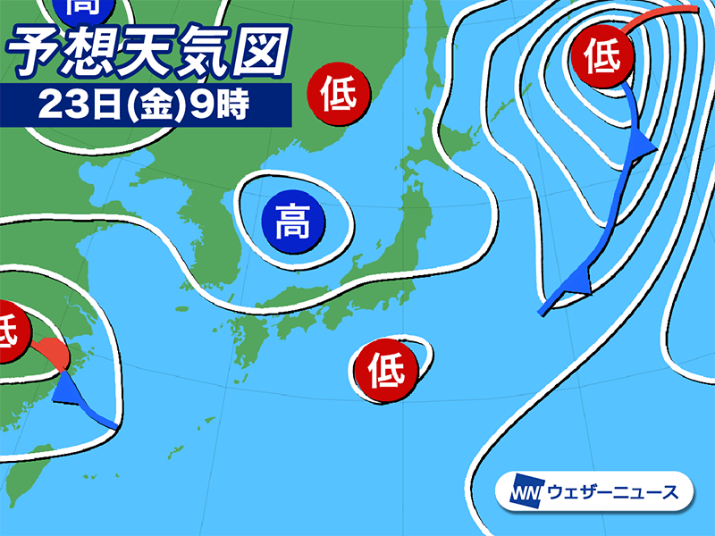 昨日22日(木)に梅雨入りが発表された沖縄地方は、雲が多くすっきりしない天気になりますが、梅雨前線の活動が弱く雨のところは少ない見込みです。