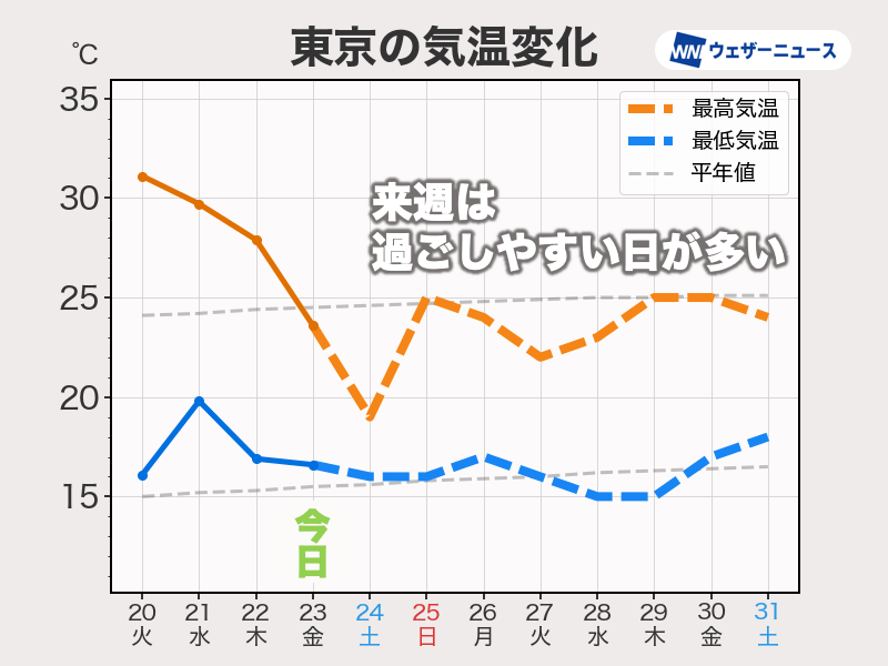 来週はこの時期らしい気温の日が多い