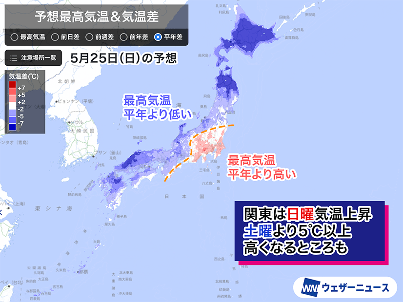 全国的に気温低めの土曜日 あす日曜の関東は暑さ復活