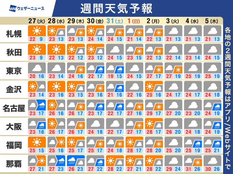 明日と週末は雨の可能性 暑さ控えめな一週間