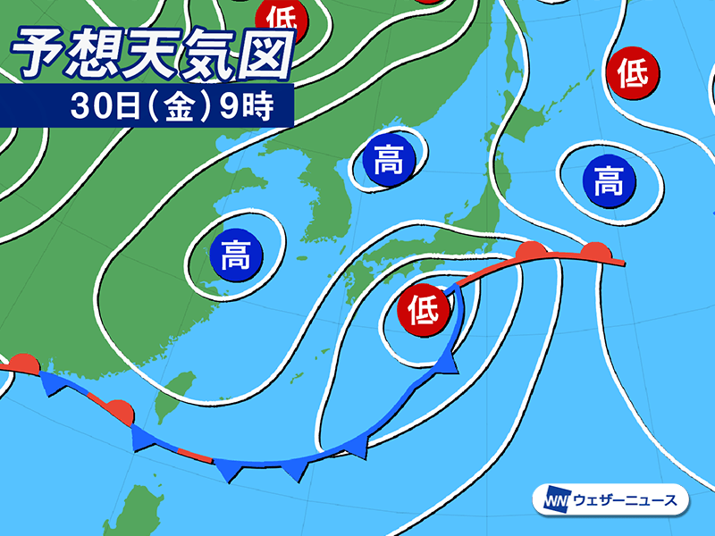 昼間は今日と同じかそれ以上に気温が高く、30℃前後まで上がる所がある予想です。日差しの下では少し暑く感じるくらいになります。屋外で長時間活動をする場合は、水分補給など熱中症対策が必要です。