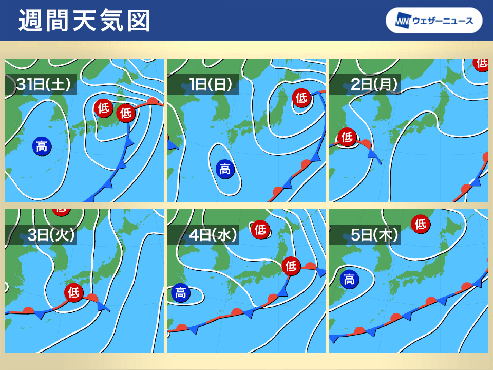 週末は雨が降りやすい 来週中頃にも広範囲で雨