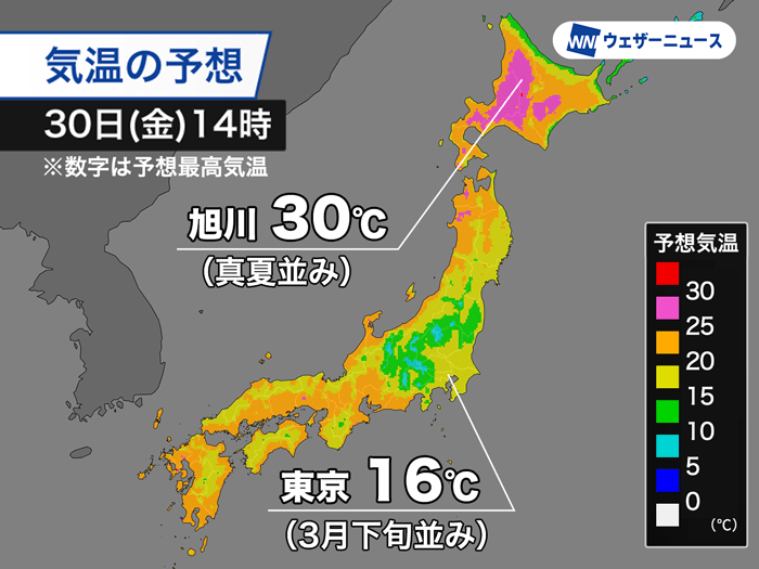 北海道で30℃以上の真夏日予想 一方で関東周辺は3月下旬並みの肌寒さに
