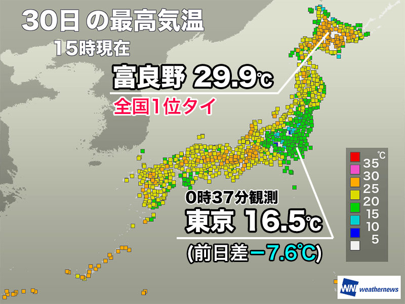 北海道富良野で29.9℃観測 全国1位タイ 関東は明日も肌寒い