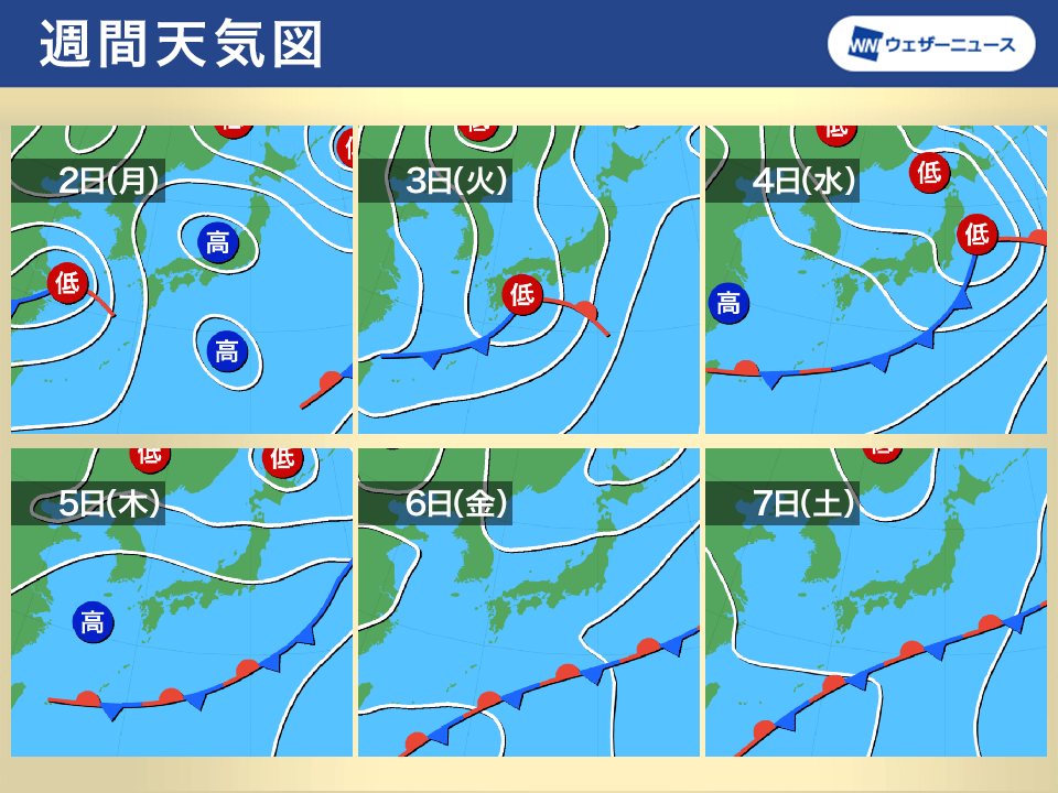3日(火)頃は全国的に雨 週後半は気温上昇し真夏日も