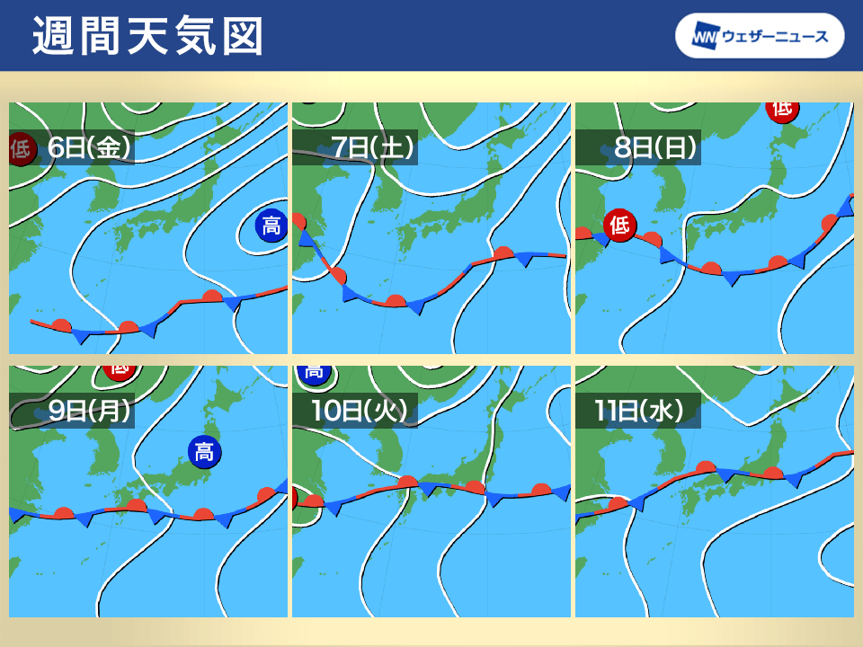 来週になると日差しが乏しくなるものの、湿った空気が流れ込むため蒸し暑くなるとみられます。エアコンの試運転や扇風機・除湿機などの準備をしておくとよさそうです。