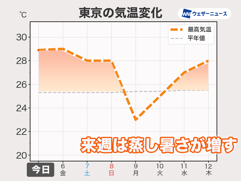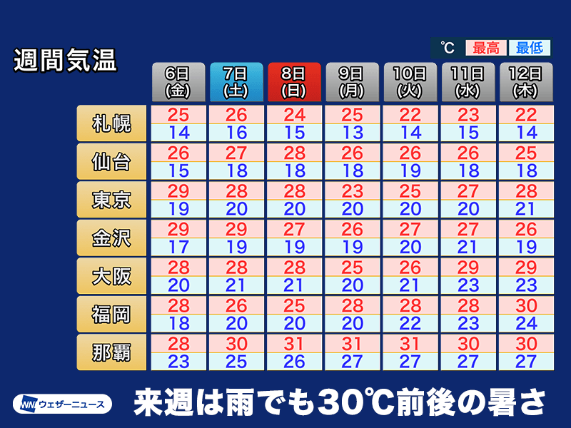 週末にかけて高温傾向続く 来週は蒸し暑さに注意