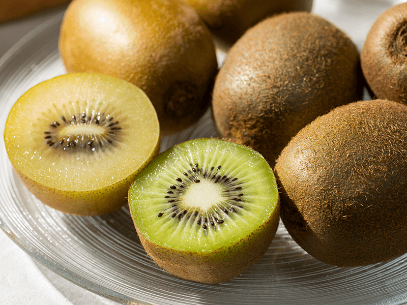 キウイには、主に果肉が緑のグリーンキウイと黄色のゴールドキウイがあります。
