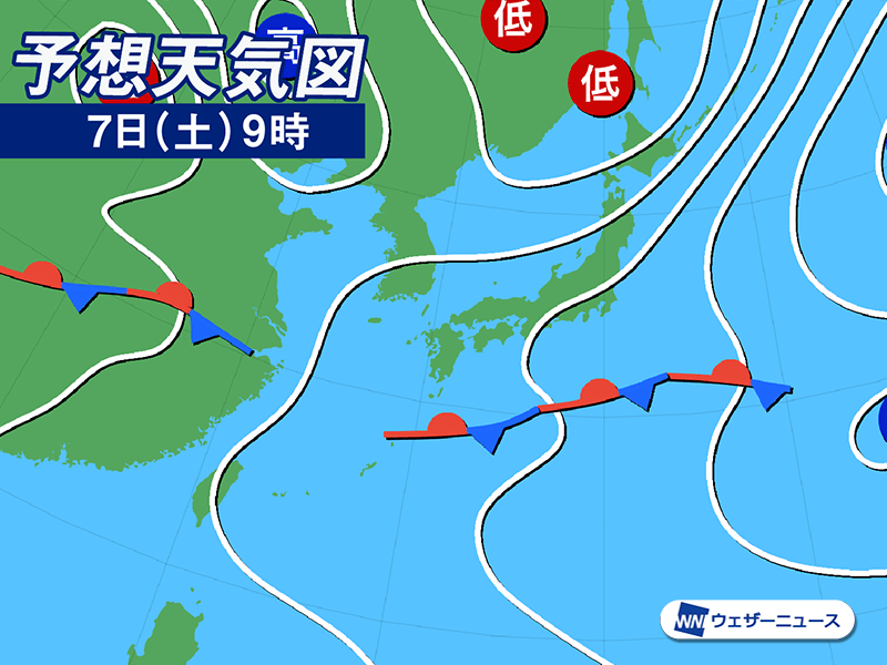 西日本で雲が多めながらも日差しが届き、大きな天気の崩れはありません。