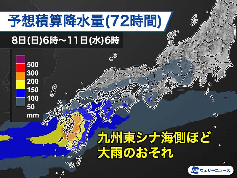 太平洋側や東シナ海側中心に雨量が増加