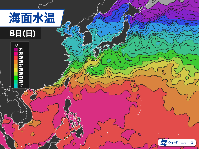 フィリピン周辺は海面水温が高い