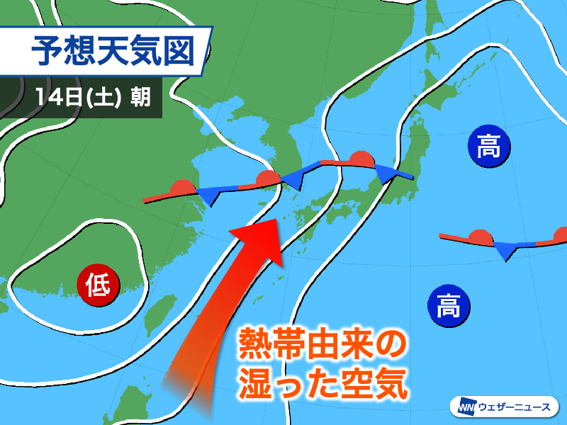 熱帯由来の湿った空気による大雨のおそれ