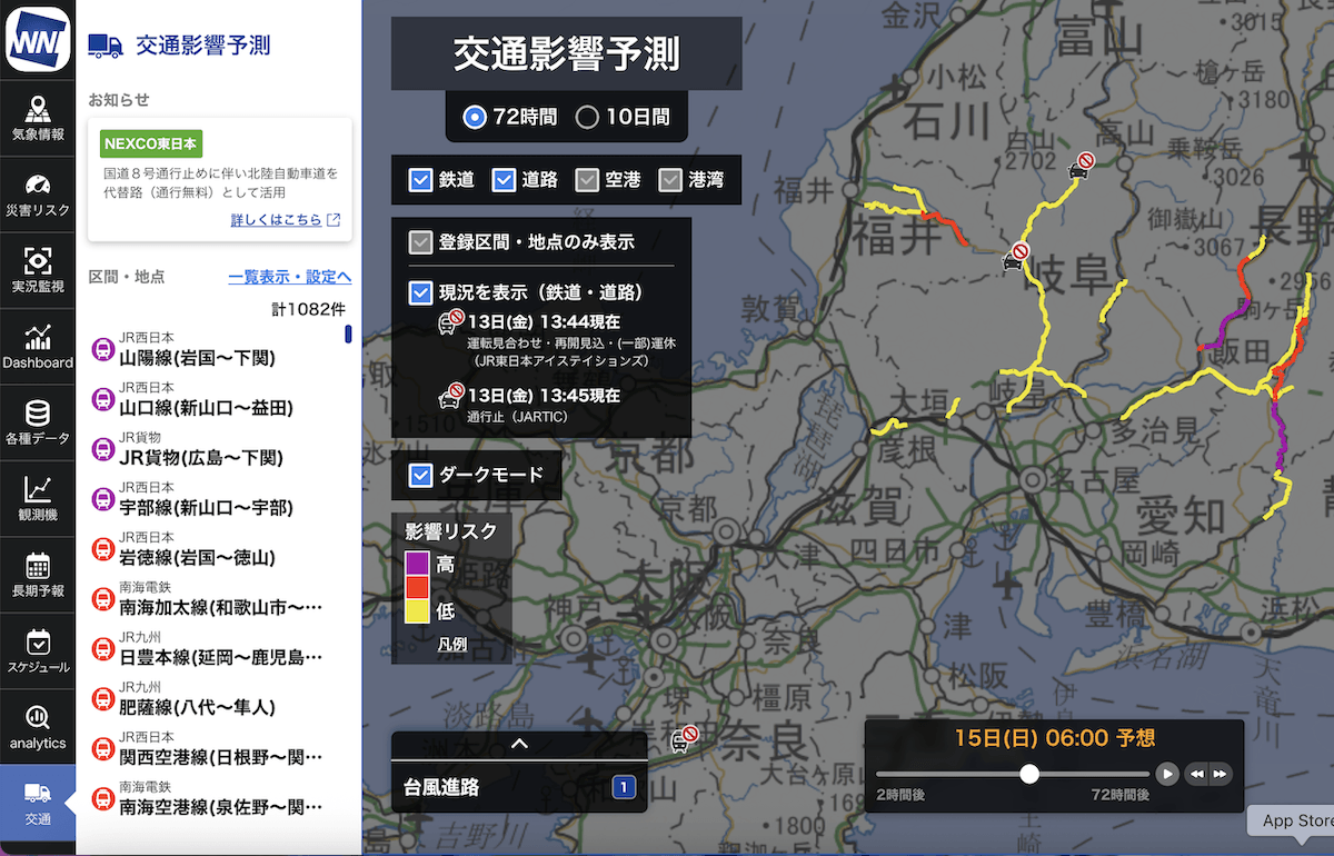 ※「交通影響予測」は、「ウェザーニュース for business」のオプション機能です。