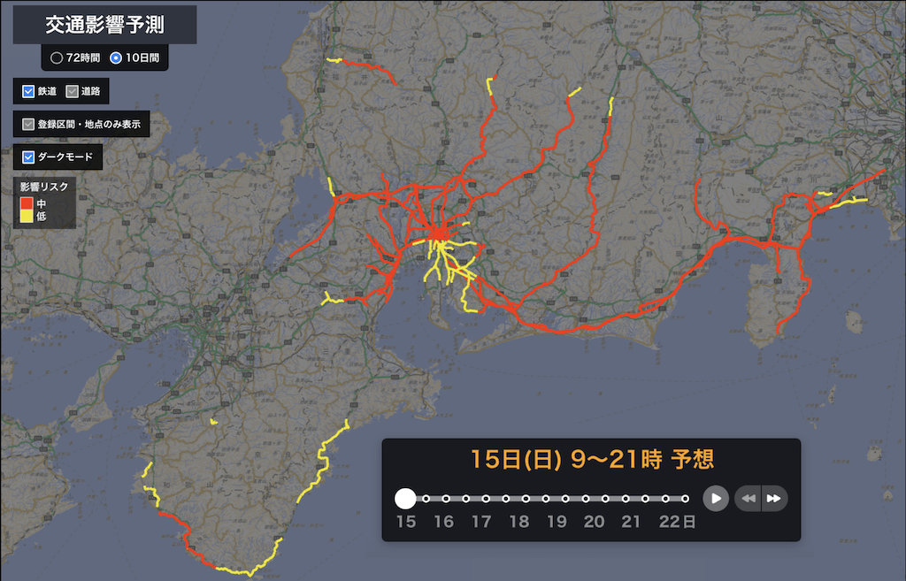 【交通影響予測】大雨シーズンに向けて活用してみましょう