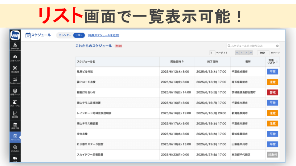 ポイント②気象リスクが高いスケジュールをお知らせします!