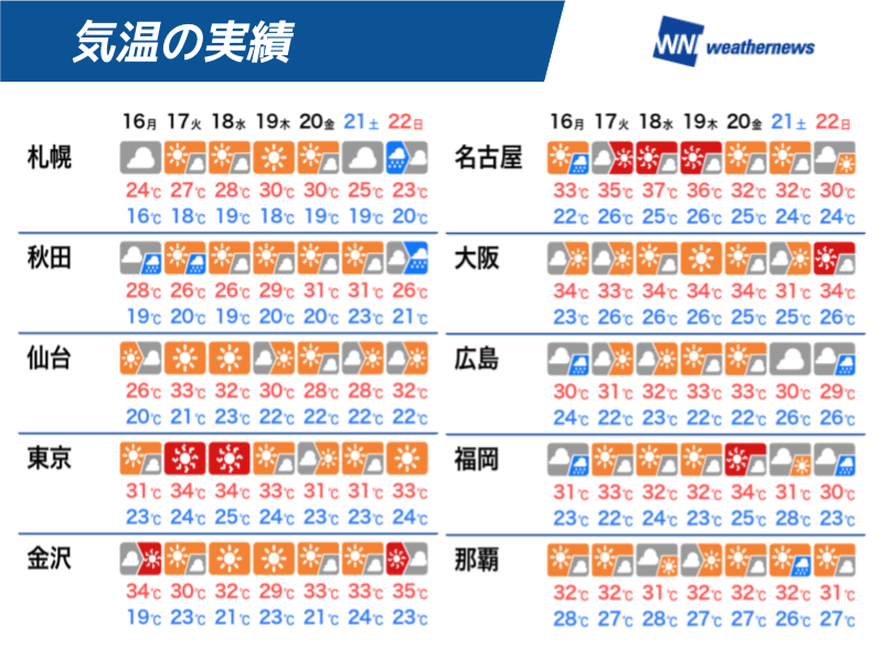 17日(火)には、甲府で38℃を超える記録的な暑さとなったほか、名古屋で統計開始以来2番目の早さとなる猛暑日を記録。真夏日となった地点は全国の6割近くにのぼりました。