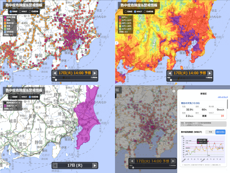 熱中症警戒アラートや熱中症特別警戒アラートの発表状況を確認することも可能です。