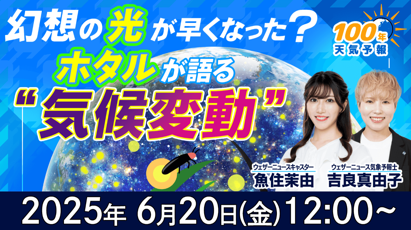 4月18日(金)からスタートした専門番組「100年天気予報」。毎週、違った角度から“未来の気候”に迫ります。6月20日(金)に放送した第10回目のテーマは「幻想の光が早くなった?ホタルが語る“気候変動”」。