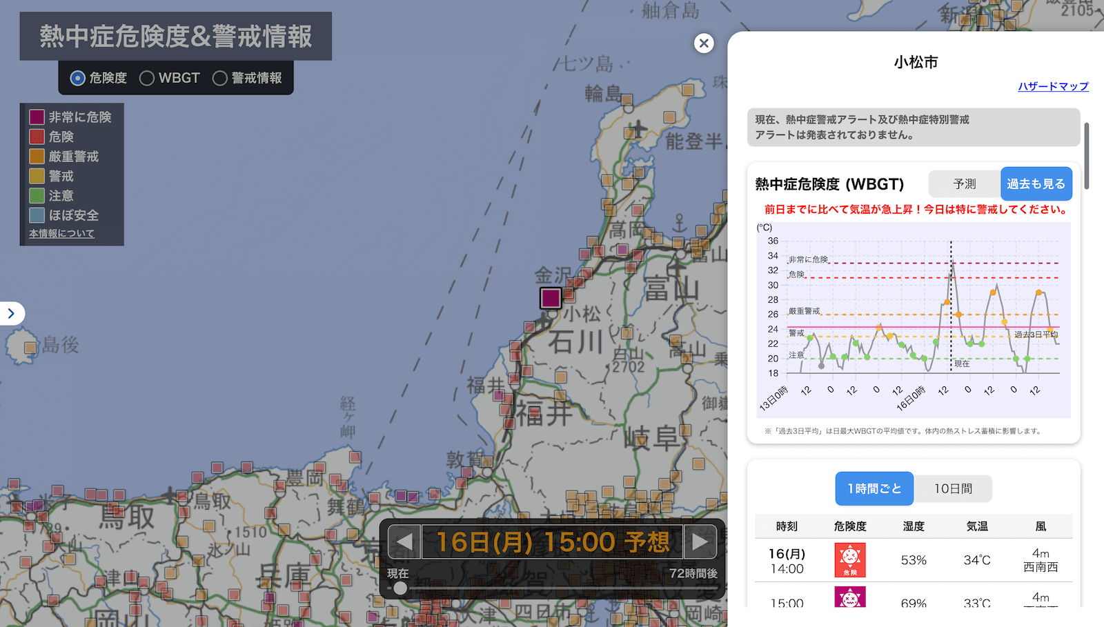 この結果から、過去3日間の実績と当日の予測をもとに熱中症に特に注意が必要と判定された日は、下記の2パターンのメッセージで注意喚起を強化することに致しました。