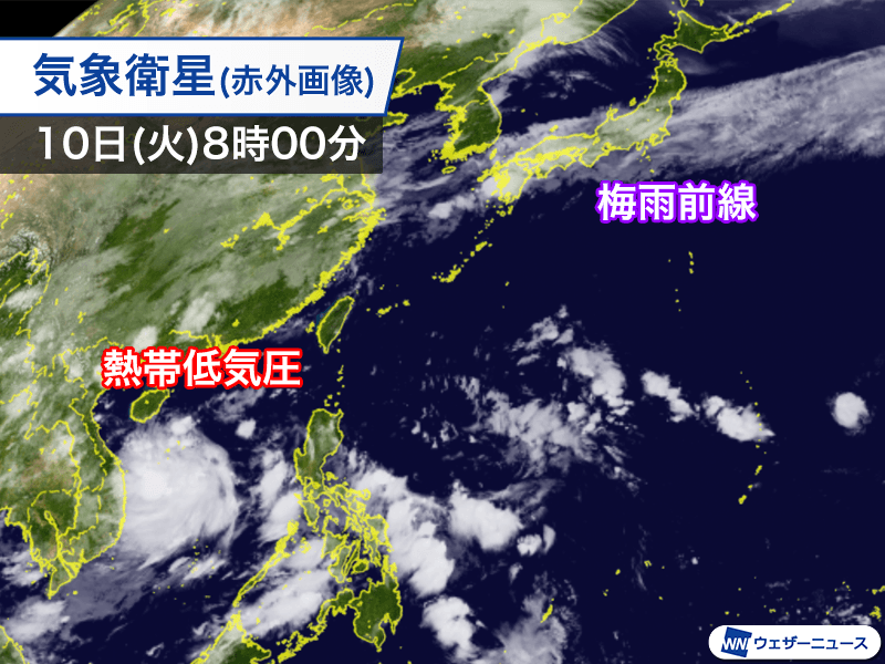 日本周辺でも台風発生の兆しが見えてきています。南シナ海で雲がまとまり、昨日9日(月)21時に熱帯低気圧として解析されました。