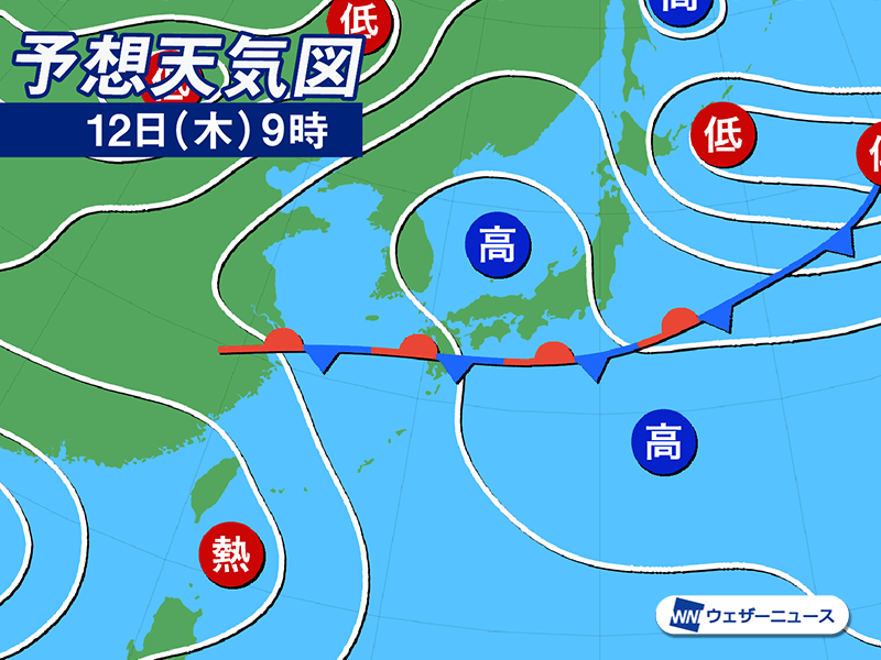 西日本は梅雨前線が引き続き停滞するため梅雨空となります。九州や中国、四国では雨が降りやすく、外出には傘が必須です。