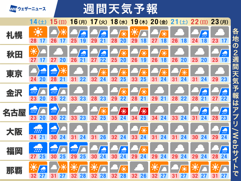 今週末は広範囲で雨 来週は暑さ厳しく猛暑日予想も